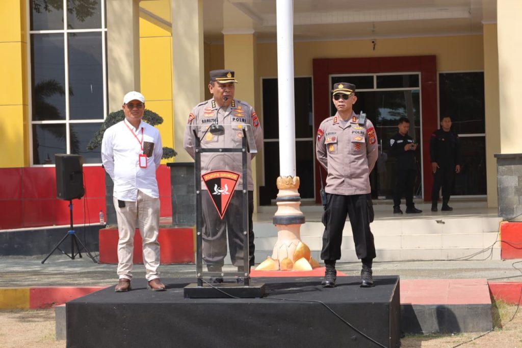 Kegiatan tersebut berlangsung pada Sabtu, 25 April 2026, di lapangan Mako Brimob Biromaru sebagai tanda dimulainya rangkaian pengamanan.