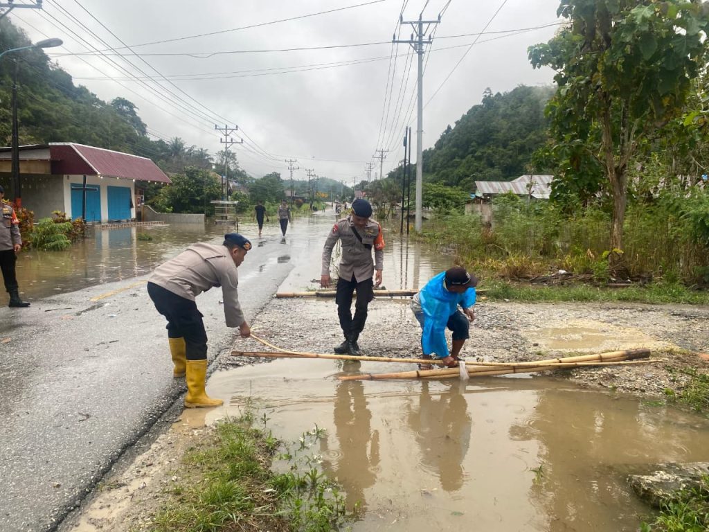 Brimob Sigap Tangani Banjir di Desa Saojo, Pamona Utara