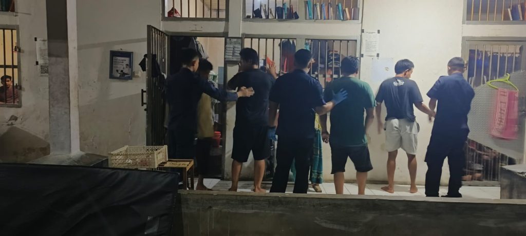 Dalam pelaksanaannya, petugas melakukan pemeriksaan secara menyeluruh terhadap setiap kamar hunian tahanan.
