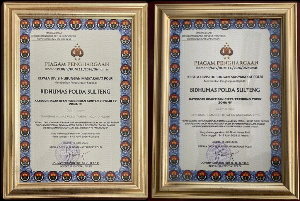 Bidhumas Polda Sulteng Raih Penghargaan Nasional di Rakernis Humas Polri 2026
