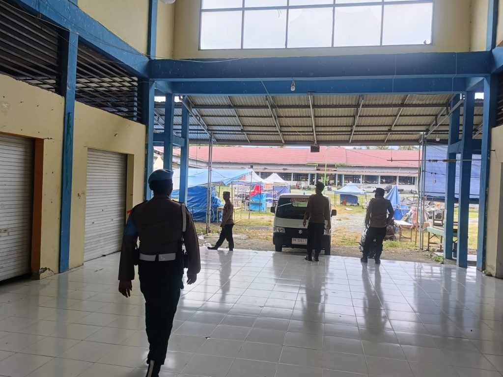 Pada Rabu, 18 Maret 2026 pagi, personel Satgas Preventif menyisir kawasan Pasar Rakyat Desa Sansarino, Kecamatan Ampana Kota.