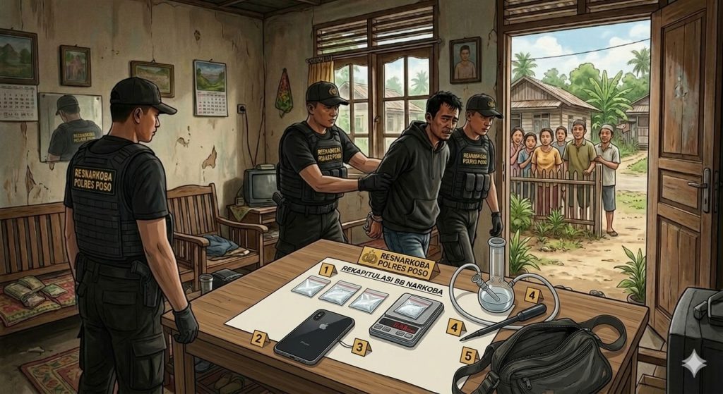 Operasi penindakan itu dilakukan oleh Tim Opsnal Satresnarkoba Polres Poso yang dipimpin langsung oleh Kasat Resnarkoba IPTU Kadriaman, S.Pd., M.H.