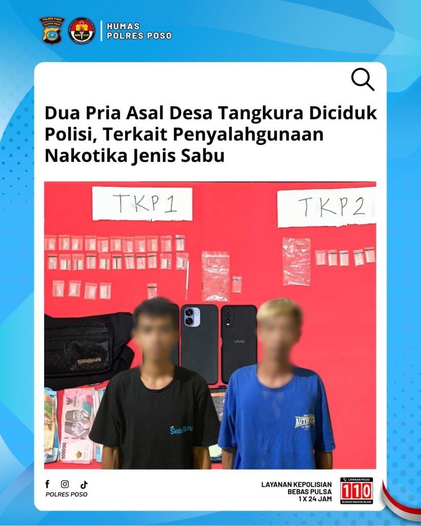 Tadulakonews.com – Pengungkapan kasus ini bermula dari penangkapan tindak pidana narkotika jenis sabu yang dilakukan oleh Satuan Reserse Narkoba Polres Poso di wilayah Desa Tangkura, Kecamatan Poso Pesisir Selatan, Kabupaten Poso, pada Rabu (15/4/2026) malam.