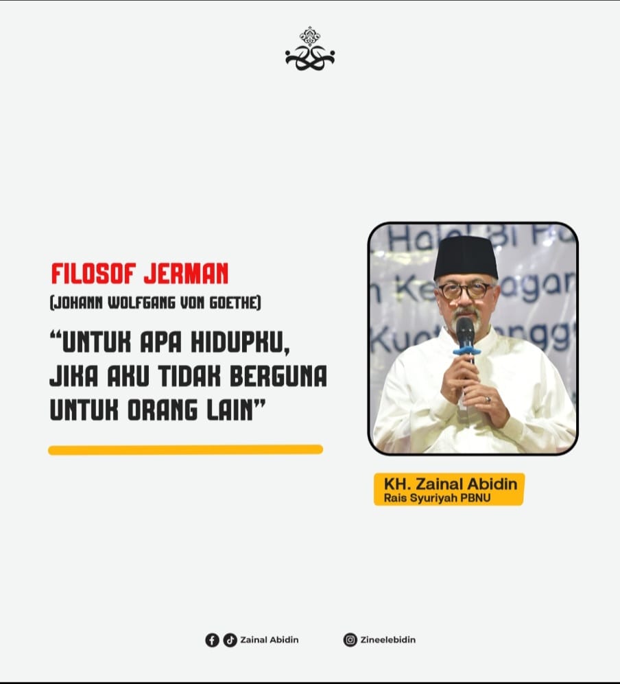 Tadulakonews.com – KABAR INSPIRASI – Quotes Prof. Dr. KH. Zainal Abidin, M.Ag mengutip kalimat bijak dari seorang filosof asal Jerman, Johann Wolfgang von Goethe.