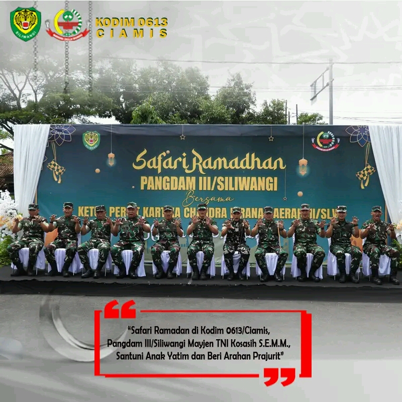 Tadulakonews.com – Pangdam III/Siliwangi Mayjen TNI Kosasih, S.E., M.M., melaksanakan kunjungan kerja ke Kodim 0613/Ciamis dalam rangka Safari Ramadhan 1447 Hijriah.