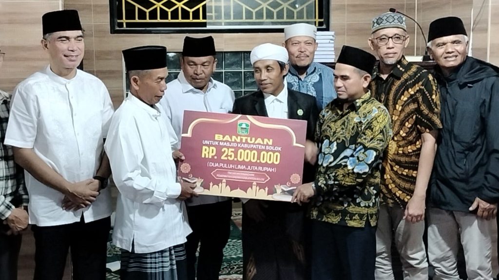 Dalam kegiatan tersebut, Tim Safari Ramadhan Pemerintah Kabupaten Solok juga menyerahkan bantuan sebesar Rp25 juta untuk Masjid Darul Hikmah sebagai bentuk dukungan terhadap kegiatan keagamaan di masyarakat.